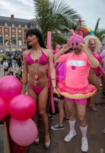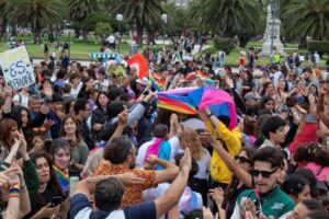 La 17° Marcha coloreó con alegría una tarde gris y fresca en la ciudad costera con el fin de celebrar «los derechos construidos y consagrados en los últimos años». Con la participación de los activistas de la diversidad, organizaciones sociales y decenas de turistas, la marcha arrancó pasadas las 16, en la plazoleta Almirante Brown, ubicada entre los lobos marinos de la rambla marplatense, bajo un cielo gris y una temperatura que no superó los 20 grados.